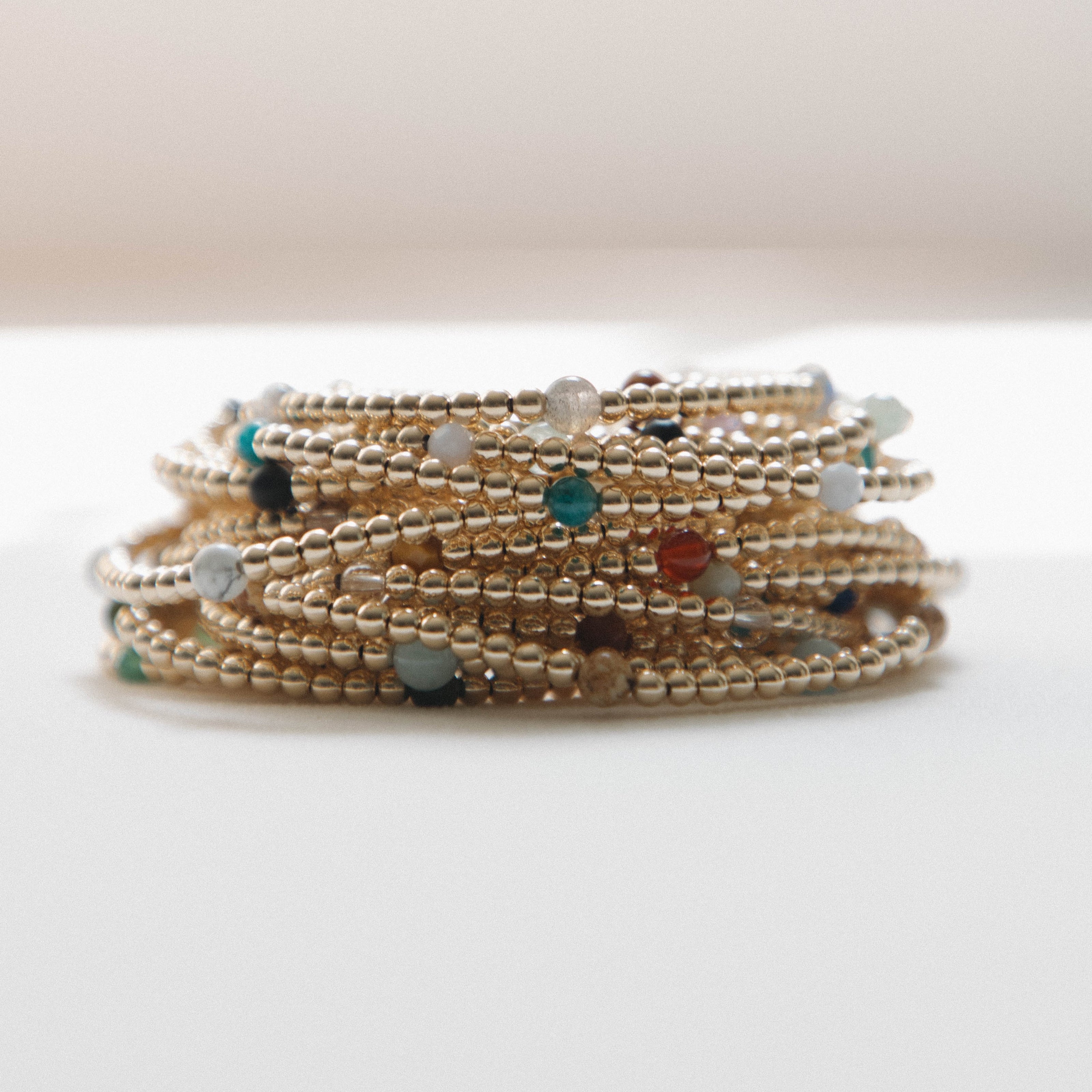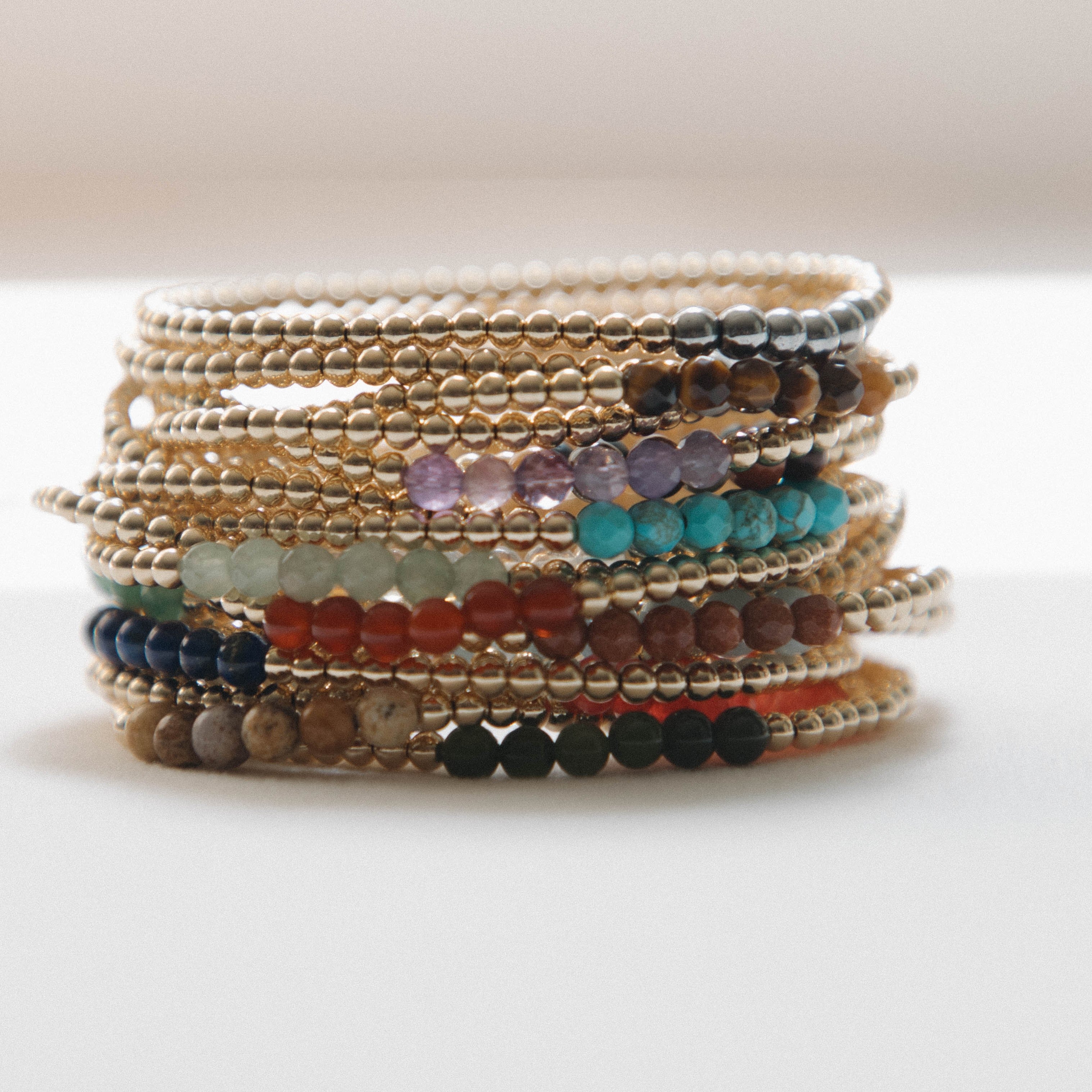 The 14k Gold Filled Beaded Bracelets collection radiates bohemian charm with its...