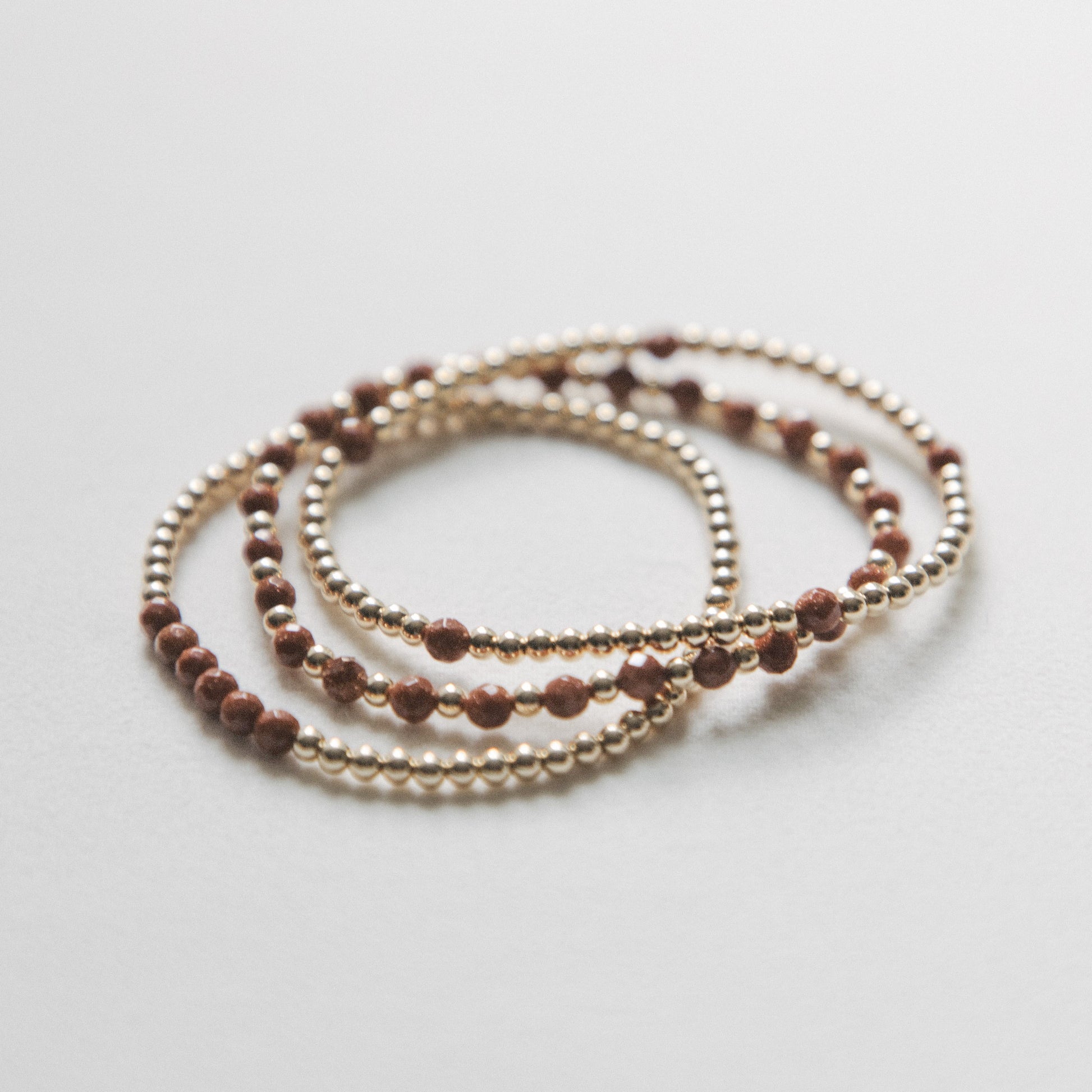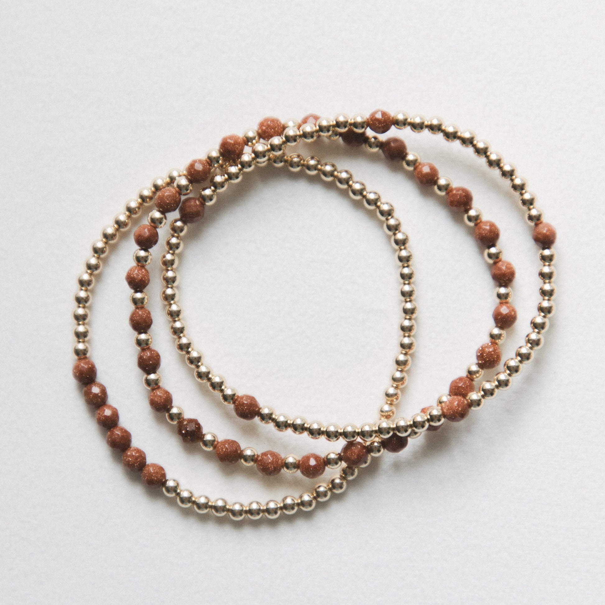This Journey stack includes three (3) bracelets. The set comes with one each of our Goldstone Intentions Bracelet, Goldstone Connect-the-Dots Bracelet, and Goldstone Path Bracelet.