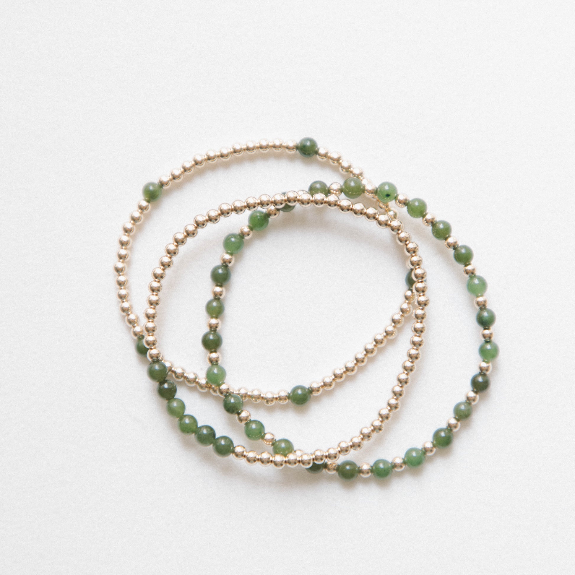 This Journey stack includes three (3) bracelets. The set comes with one each of our Jade Intentions Bracelet, Jade Connect-the-Dots Bracelet, and Jade Path Bracelet.