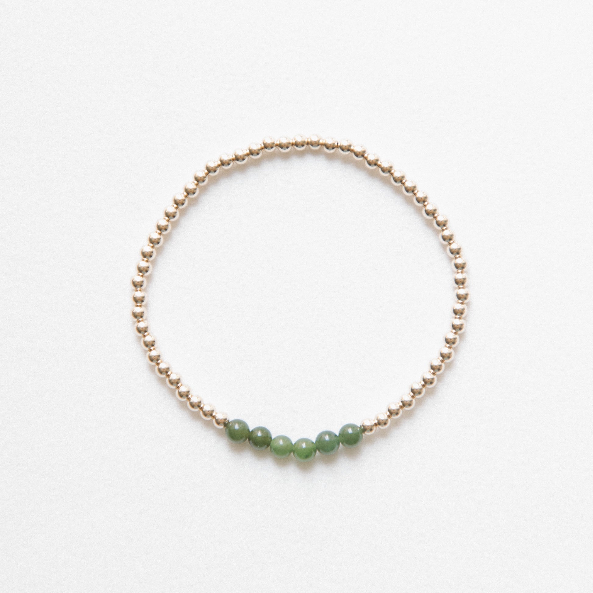 Wearing Jade will guide you to a richer life, not necessarily meaning money. Jade represents both longevity and wealth. Hand strung on elastic jewelers string, this piece should be rolled on and off instead of stretched. Gold Beads are 14k Gold Filled & will not tarnish.